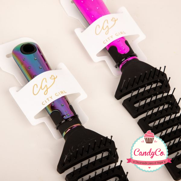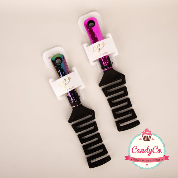 Cepillo para el Pelo Rectangular Calado con Mango Tornasolado