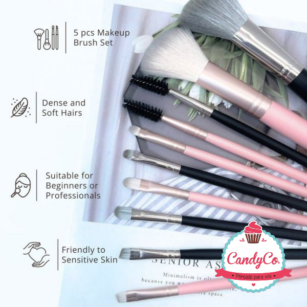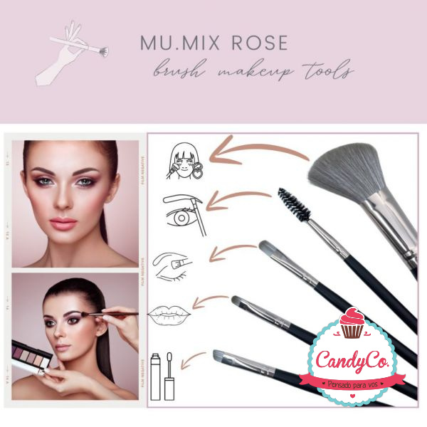 Set de Brochas para Maquillaje X5 en sobre Makeup Tools Mu-Mix Rose