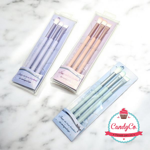 Set de Brochas para Maquillaje Color Pastel X3 en Estuche Mu-Mix Rose